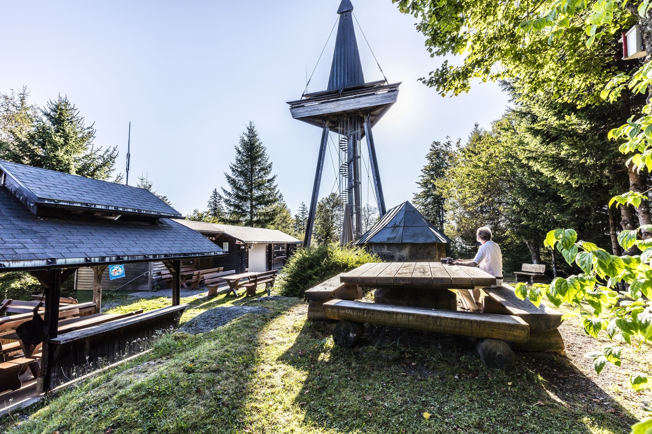 Der 33 m hohe Gugelturm ist ein Aussichtsturm auf fast 1000 M.ü.M, der herrliche Blicke freigibt. Über den Schwarzwald zum Feldberg und ins Jura zu Eiger, Mönch, Jungfrau. Bei Sonnenschein mit idealer Fernsicht blickt man von der Aussichtsplattform in 16 m Höhe sogar bis ins Montafon. Der Gugelturm ist nicht nur einen eigenständigen Ausflug wert, sondern auch ein idealer Ausgangspunkt für Wanderungen in der umliegenden Natur von Herrischried, z.B. auf der großen Rundwanderung, die Sie im Tourenportal entdecken können. Bei der Anfahrt mit dem Auto können Sie den großen Wanderparkplatz nutzen. Veranstaltungen und Gruppenwanderungen mit Wanderführer durch den Schwarzwald laden zur Teilnahme ein.Und wenn Sie der Hunger packt - genießen Sie im Gugelstüble am Fuße des Gugelturms ein herzhaftes Vesper oder Kaffee und ein Stück selbstgemachten Kuchen.